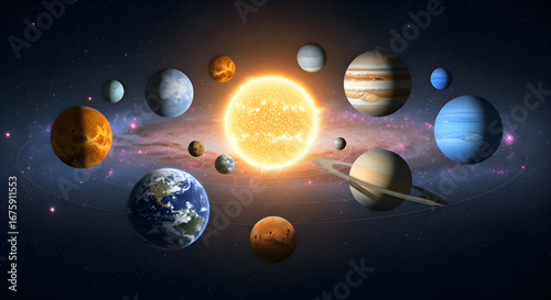 "Solar System Illustration – Planets Orbiting the Sun in Outer Space"