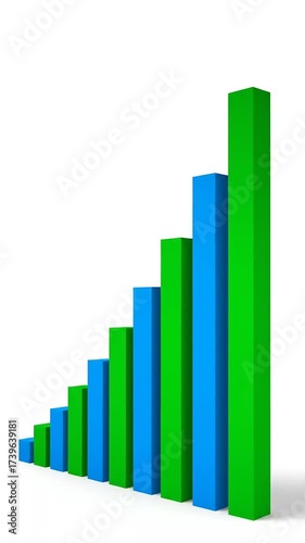 Graphical representation of a rising bar chart in blue and green colors, symbolizing growth and success
