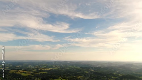 Sweeping Aerial Vista of Rolling Green Hills and Countryside.