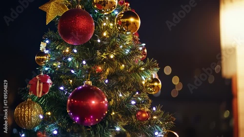 Beautifully Decorated Christmas Tree with Twinkling Lights and Ornaments in a Cozy Home Setting.