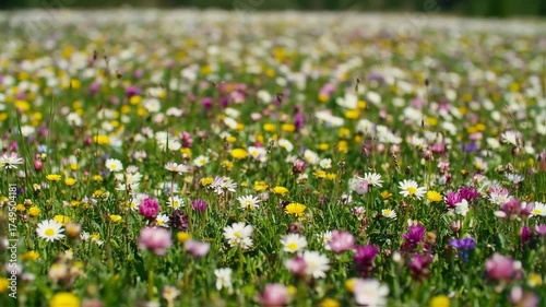 Beautiful field of colorful wildflowers in full bloom during springtime season.