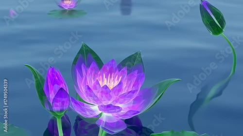 Beautiful Purple Water Lilies Bloom in Serene Pond Waters.