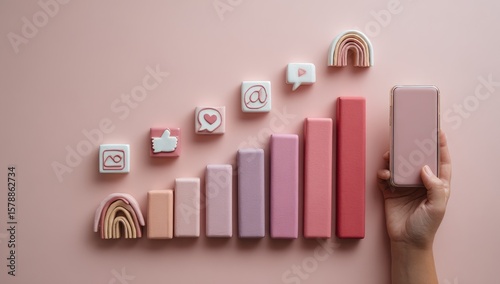Pastel-toned graphic showing social media growth