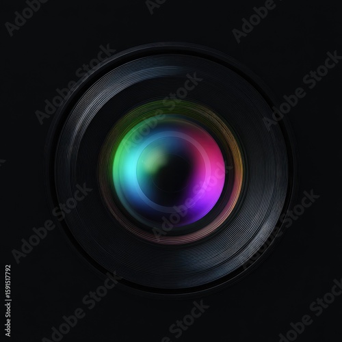 Close-up of a colorful camera lens against a dark background