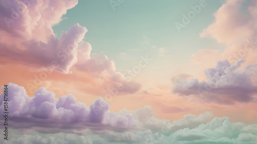 "Soft pastel abstract cloudscape with lavender, peach, and mint green gradients blending seamlessly, featuring wispy textures and subtle sparkle effects"