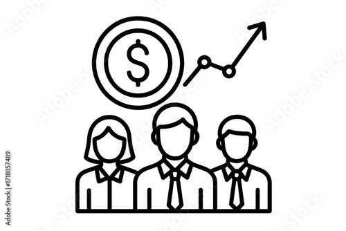 Business team financial growth. Employee performance analysis. Profit progress, company value success. Investment chart. Money, revenue statistics vector icon. Corporate teamwork.