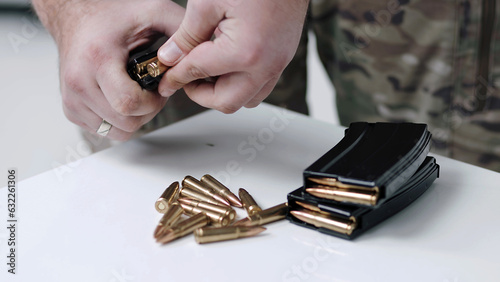 Hand taking ammo, bullets 762 caliber for ak47, gun crime military target war bullet weapon army military firearm, bullet pile, bullet shells, military concept, hunting ammo, close up