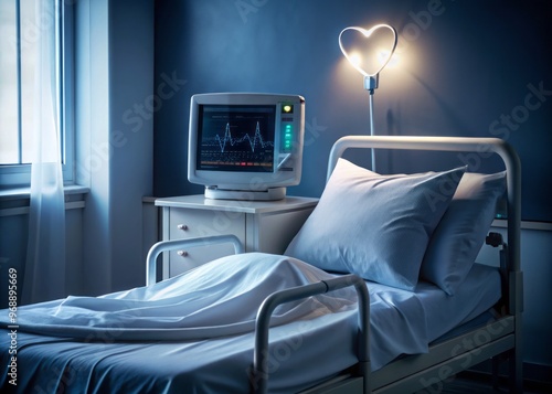 "A hospital bed's pale sheets are a stark contrast to the dull gray heart monitor struggling to keep a patient's life beats steady during a quiet night."
