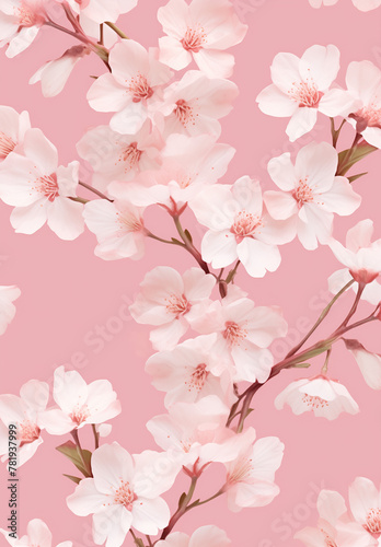 부드러운 파스텔 핑크와 흰색의 작고 손으로 그린 벚꽃이 있는 섬세하고 봄에서 영감을 받은 꽃 패턴 A delicate, spring-inspired floral pattern with tiny, hand-drawn cherry blossoms in soft, pastel pink and white