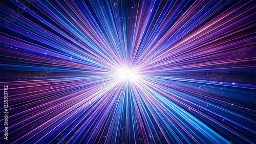 魔法のようなキラキラ 宇宙風サンバースト 青紫色 水色 近未来の雰囲気 背景素材 16:9サイズ AI生成素材