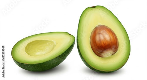 新鮮なアボカド半分 鮮やか緑色 滑らか肌 完熟実. AI Generated