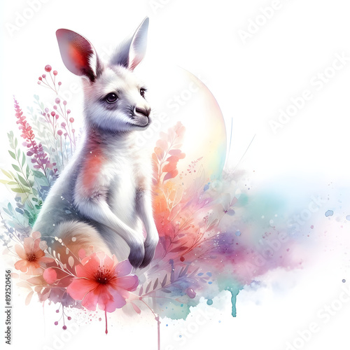 흰 배경, 캥거루, 수채화 (White background, kangaroo, water colour)