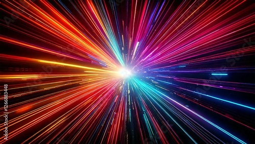カラフルなレーザー風サンバースト 近未来の雰囲気 背景素材 16:9サイズ AI生成素材