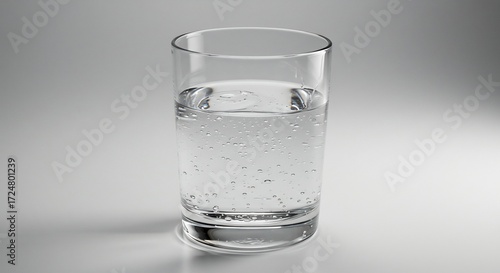 透明なグラスに輝く炭酸水 静かな光 爽快感. AI Generated