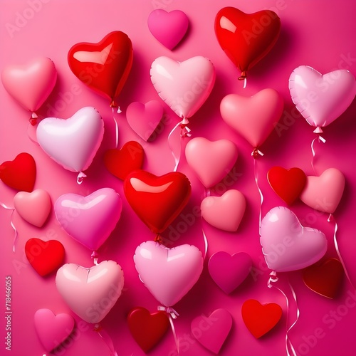 red and pink heart balloons Valentine's day background with heart shaped balloons
