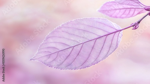 A close-up of a purple leaf on a branch, surrounded by pink flowers and leaves in the foreground, creates a visually stunning image