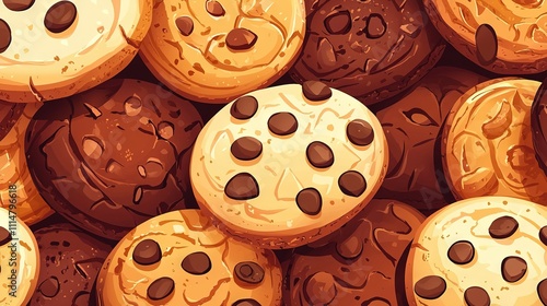 A group of chocolate chip cookies piled together on top of another stack