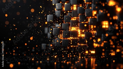 A group of speakers sit together against a black backdrop, with orange stage lights illuminating the space between them