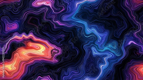 A vibrant abstract background featuring purple, red, blue, and yellow swirls and curves