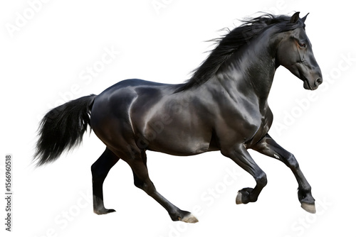 black horse running gallop isolated on white background PNG ,AI GENERATED