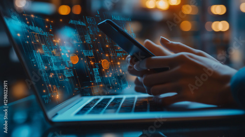 デジタル作業シーン | ホログラフィックUIと未来的なテクノロジー Digital Work Scene | Holographic UI & Futuristic Technology
