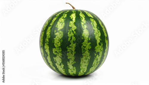 ストライプ模様の皮が映える丸ごとスイカ – 白背景で際立つ高精細夏の素材 Whole Watermelon with Bold Striped Rind – High-Resolution Image on White Background