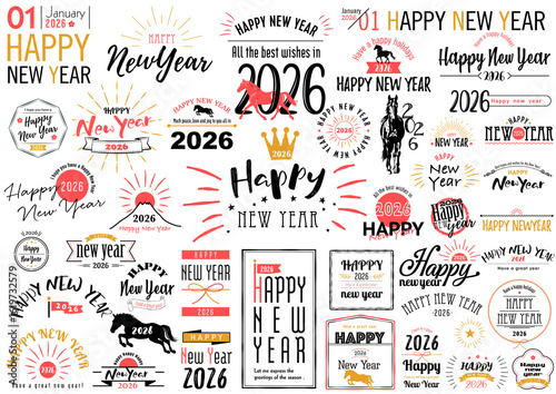 年賀状文字デザイン 文字あしらい 2026年 午年 令和八年