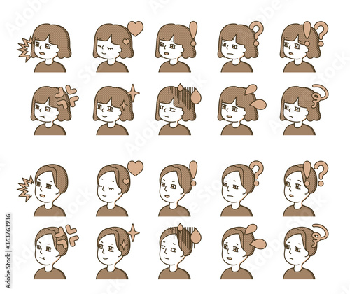茶色の人物横顔イラスト 表情バリエーション 23