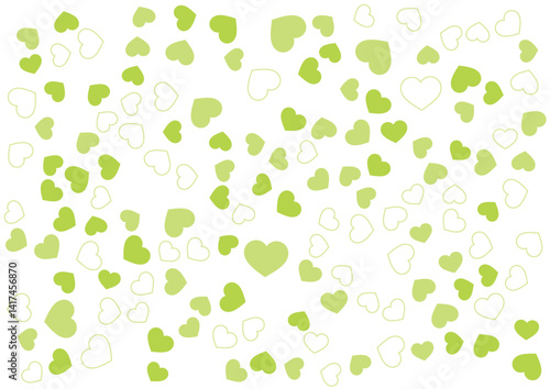 ハート柄の背景 黄緑系の3色 フチと単色 ハート