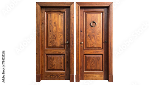3. Elegant Wooden Door Pair, isolated on transparent background