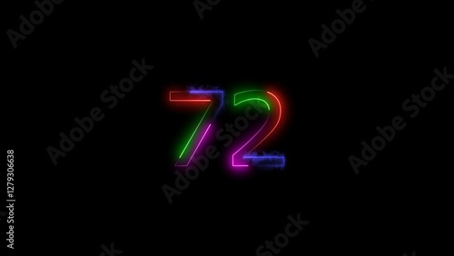 A number illustratin, and glowing neon number 72 illustration . on a black background.and creating a stunning 4k illustration.