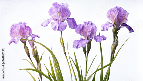 A beautiful painting of purple irises on a white background The irises are in full bloom and have delicate petals