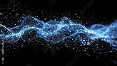 A blurred wave of light on a black backdrop with a blue hue, appearing on the right side of the image