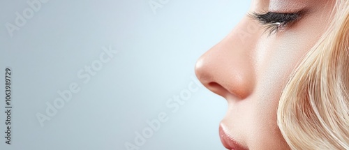 a close up of a woman's face with long eyelashes