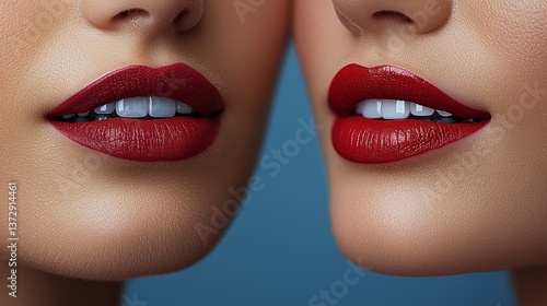A close up of a woman's face with red lipstick