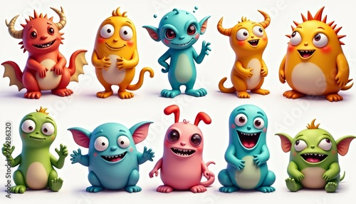 A colorful collection of animated monster characters