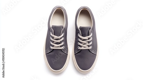 a pair of grey sneakers on a white background The shoes have a classic design with a low-top silhouette and a lace-up closure The upper part of the shoe is made o