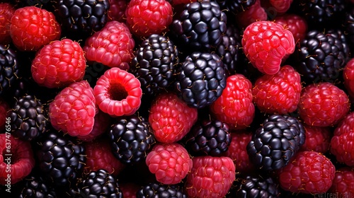 a pile of raspberries and black raspberries. generative ai