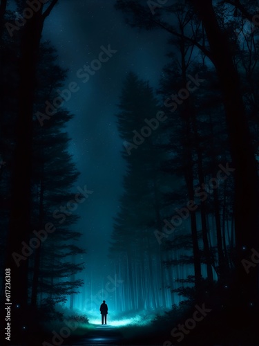 A stunning digital illustration of a dense jungle canopy against a moonlit sky, conveying a sense of mystery and beauty.