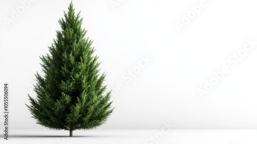 A tall green tree sits in the middle of a white room The tree is the only element with color against the two identical white walls