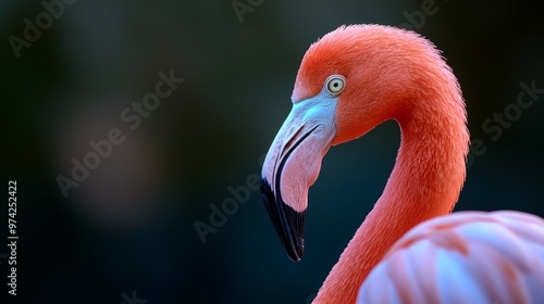 A tight shot of a pink flamingo against a softly blurred backdrop The flamingo's head and neck subtly blurred