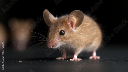 A tight shot of a small rodent against a black background Other small rodents are visible in the background