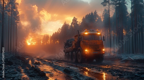 a truck in the forest