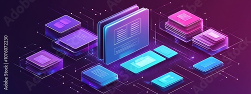 Abstract network grid with files and folders, futuristic software interface, digital document management system, store, search and organize documents, corporate business, paperless office