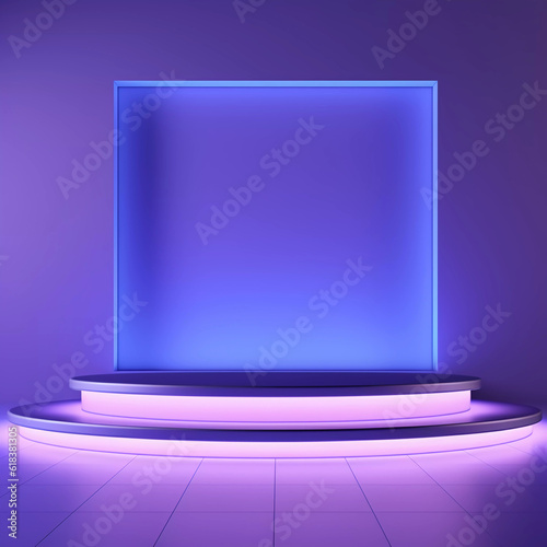 Abstract technology background, Minimalistic purple, architectural background and podium, modern design for poster, cover, branding, product showcase, AI generated.