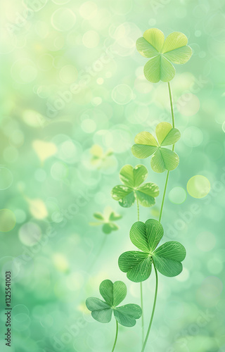 Adorable four-leaf clover digital art with pastel green background and bokeh effect