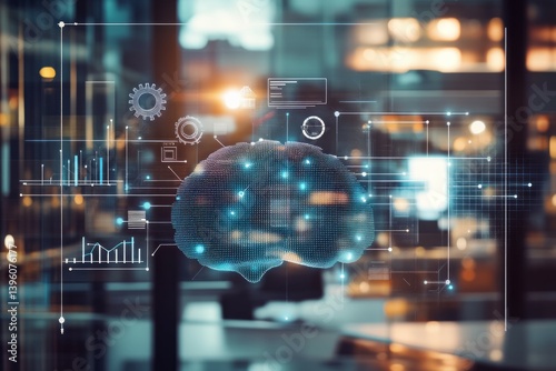 AI-inspired graphic, such as a digital brain or interconnected nodes, symbolizing intelligence and automation