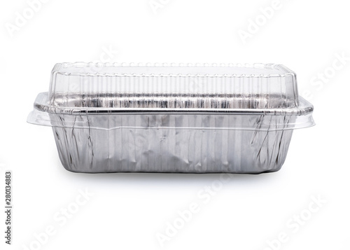 Aluminum foil cup for bakery packing with clear plastic lid on white background clipping part.