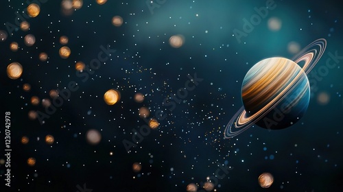 An artist's depiction of a solar system featuring a foreground planet and a backdrop of stars
