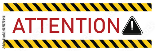Attention with exclamation mark. black and yellow sign in striped frame of vector illustration